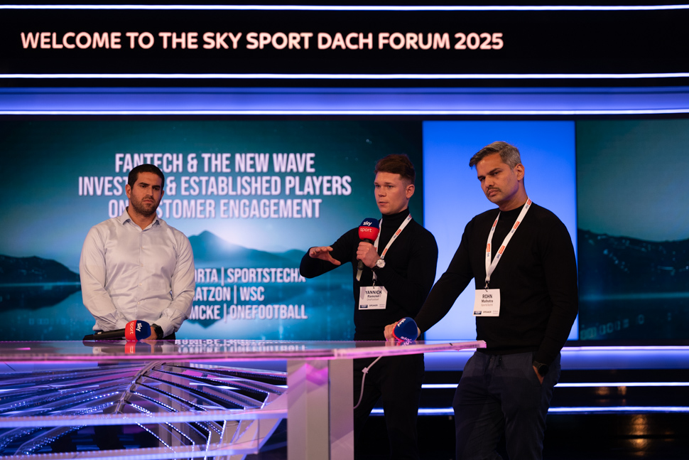In der Runde »FanTech & the new wave: Investors & established players on customer engagement« diskutierten der SportsTech-Gründer Rohn Malhotra, Ido Ratzo von WSC Sports und Yannick Ramcke von OneFootbal. Letzterer betonte, dass Geschwindigkeit beim Erstellen von Content häufig wichtiger sei, als einen zu 100% perfekten Inhalt zu liefern.