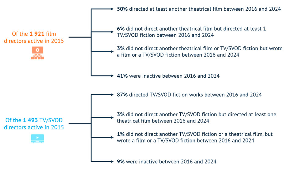Über 40% der Drehbuchautoren und Regisseure europäischer Kinofilme hatten seit 2015 kein Projekt. Die EU-Analysten befragten knapp 39 000 Personen, die zwischen 2015 und 2024 an europäischen Kinofilmen und TV-/SVoD-Fiktion beteiligt waren. Sie konstatieren u.a. eine »hohe Prekarität« der Kinoschaffenden.