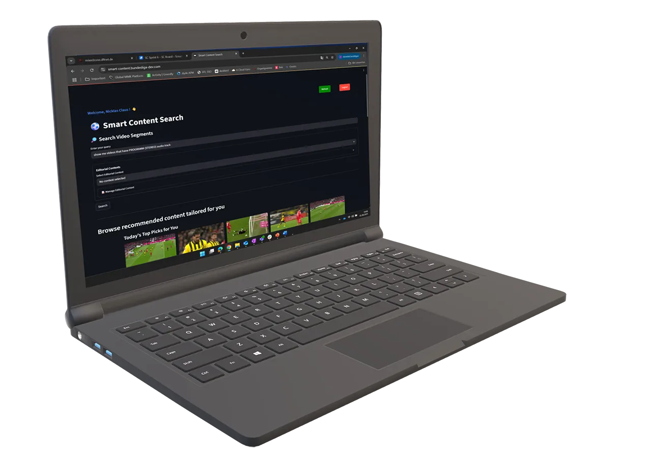 Während die KI-generierten Metadaten die Suchbarkeit von Content optimieren, bietet KI auch die Möglichkeit, aus den Suchpräferenzen der individuellen Nutzerin bzw. des Nutzers zu lernen, welche Art von Inhalten und welche lokalen Spielerpersönlichkeiten, Bundesliga-Clubs, usw. von Interesse sind, und die entsprechenden Inhalte künftig schon im Vorgriff bereitzuhalten. Hinzu kommen Informationen wie das Land, in dem die Person tätig ist, und ihre Landessprache. Nutzerinnen und Nutzer können selbst weitere Informationen eingeben, die den Suchvorgang beschleunigen, sodass anhand aller dieser Vorgaben ein Nutzendenprofil und ein inhaltliches Ranking entsteht und automatisch der relevanteste Content gefunden wird. »Wenn eine Redakteurin oder ein Redakteur das System eine Weile genutzt hat, erscheinen bei jedem neuen Zugriff automatisch die neuesten Informationen zu den bevorzugten Spielern und Themen auf der Startseite, ausgewählt auf der Basis des persönlichen Profils und des bisherigen Suchverlaufs«, erläutert Deckenbrock.