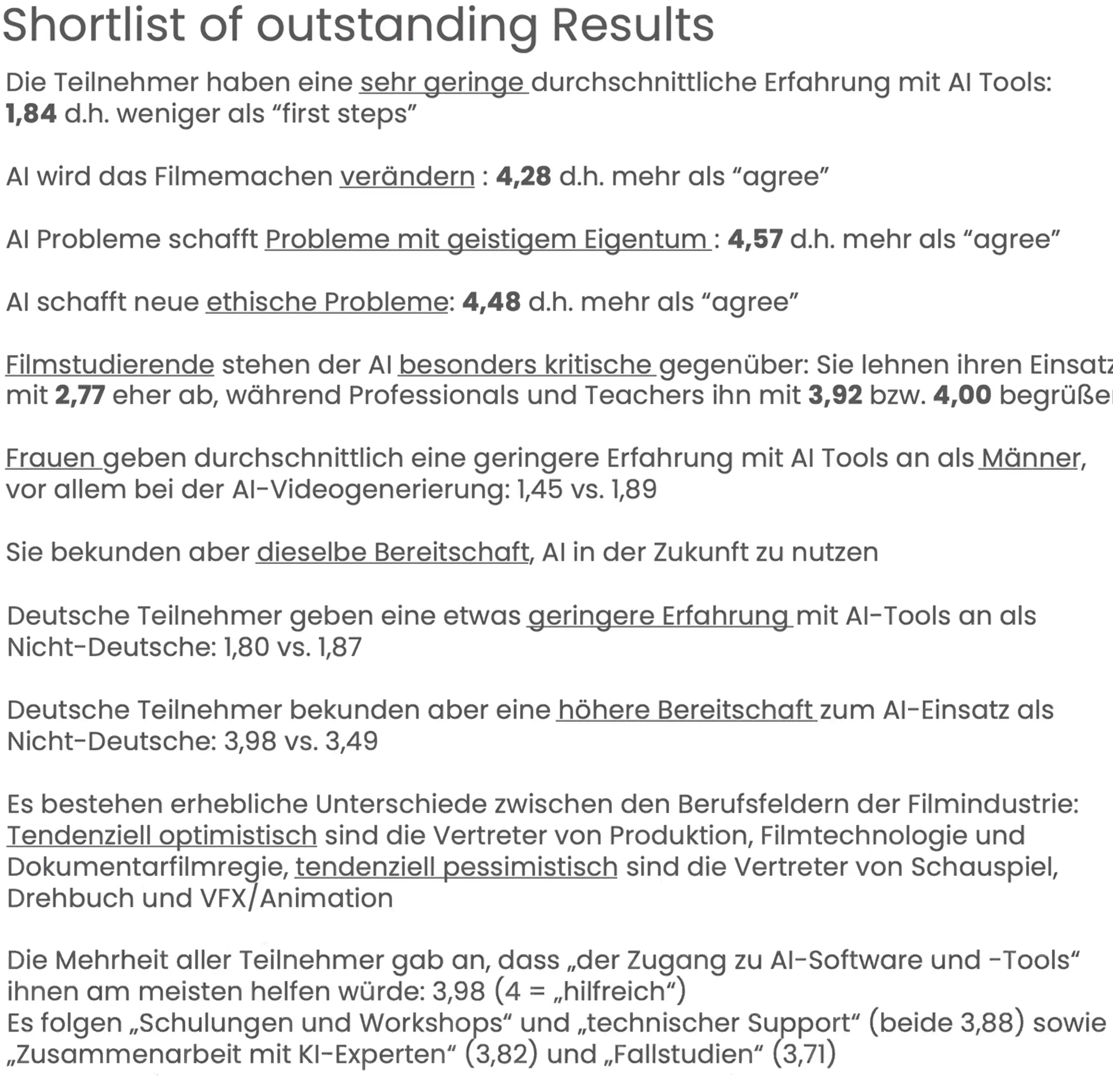Die Studie wertet das als klaren Auftrag an die Ausbildungsinstitutionen: Filmhochschulen müssen KI aktiv in ihre Curricula integrieren – weder als Bedrohung noch mit unkritischer Begeisterung, sondern als erlernbare Kompetenz.