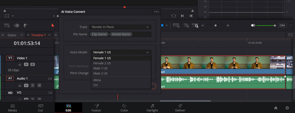 Die KI-Voice-Convert-Funktion klingt erst mal wie eine große Sache und sie hat sicherlich auch ihren Nutzen. Doch am Ende hängt es davon ab, wie gut das Ausgangsmaterial zum Sprachmodell passt und wie hoch die Ansprüche an das Ergebnis sind. Zunächst ist es einfach, eines der vorinstallierten Sprachmodelle auf eine andere Datei zu übertragen. So kann auch das Geschlecht der Stimme geändert werden. Mit wenigen Klicks und kurzer Renderzeit ist das Sprachmodell übertragen. Die Ergebnisse mit den vier vorinstallierten Stimmen klingen zu blechern oder zu stark komprimiert. Manchmal wurde es geradewegs zu einer Roboterstimme. Oft wird der Klang auch zu harsch und zischlastig, so dass die Stimme zwar authentisch klingt, aber als wäre sie zu stark mit meinem Kompressor bearbeitet worden.