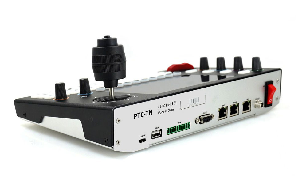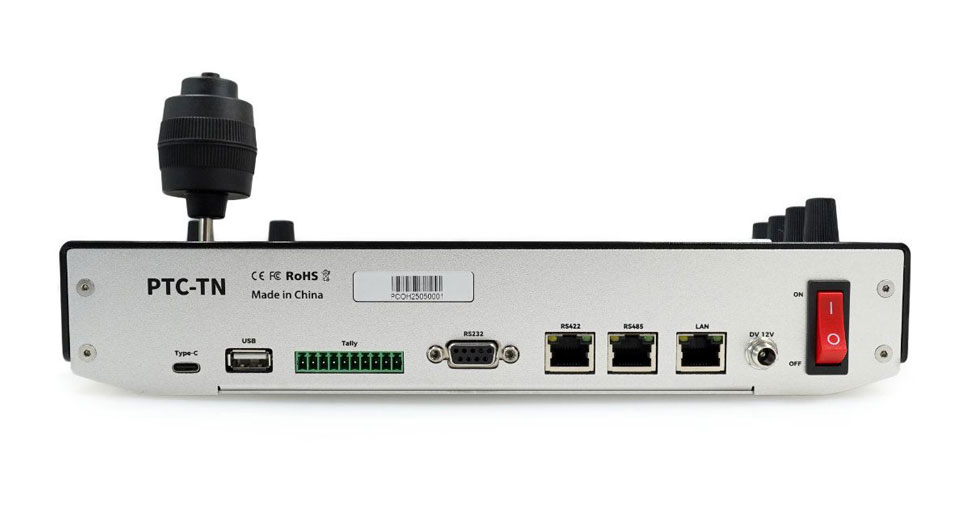 Der PTC-TN unterstützt alle gängigen Verbindungsstandards: IP (RJ45), RS-232, RS-485 und RS-422. Die Protokollpalette umfasst NDI, ONVIF, VISCA, VISCA-over-IP, Sony VISCA sowie Pelco P/D. Damit lässt sich der Controller nahtlos in bestehende Netzwerke und Workflows integrieren. Über IP können bis zu 255 Kameras gesteuert werden, über VISCA direkt bis zu sieben Geräte.