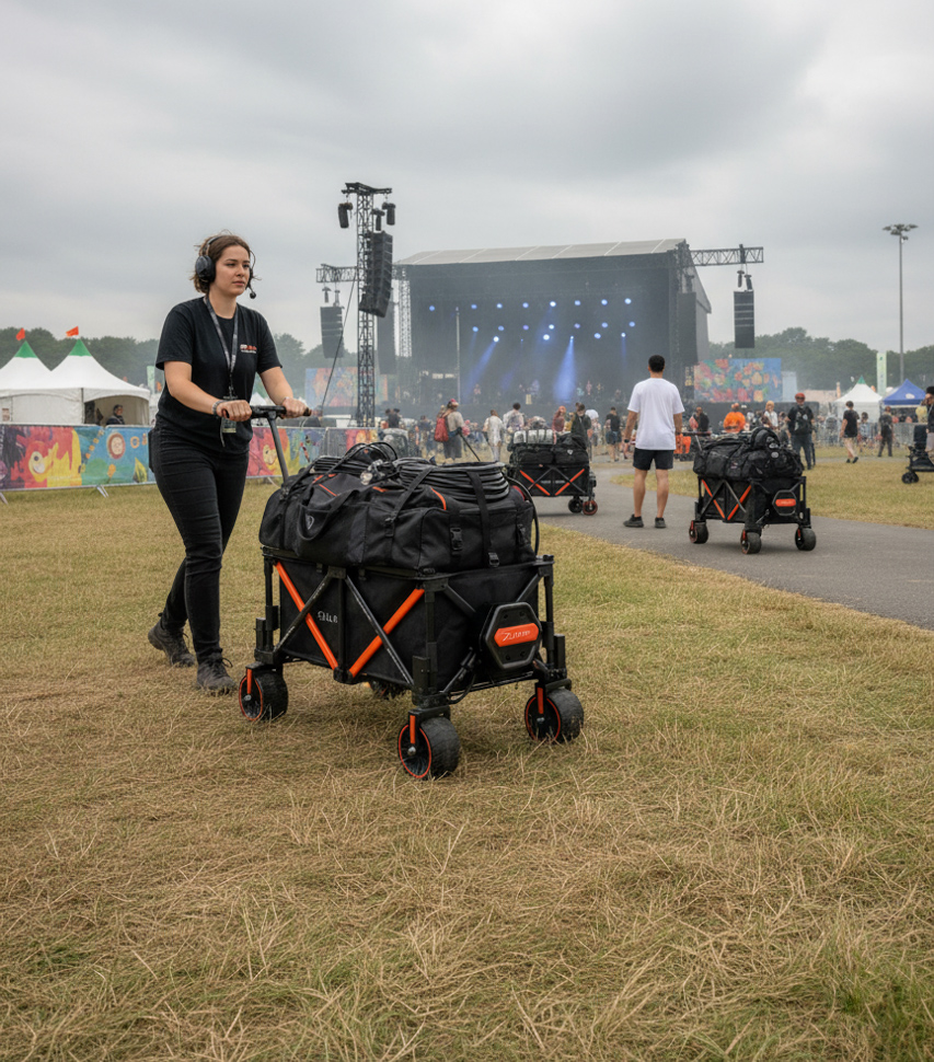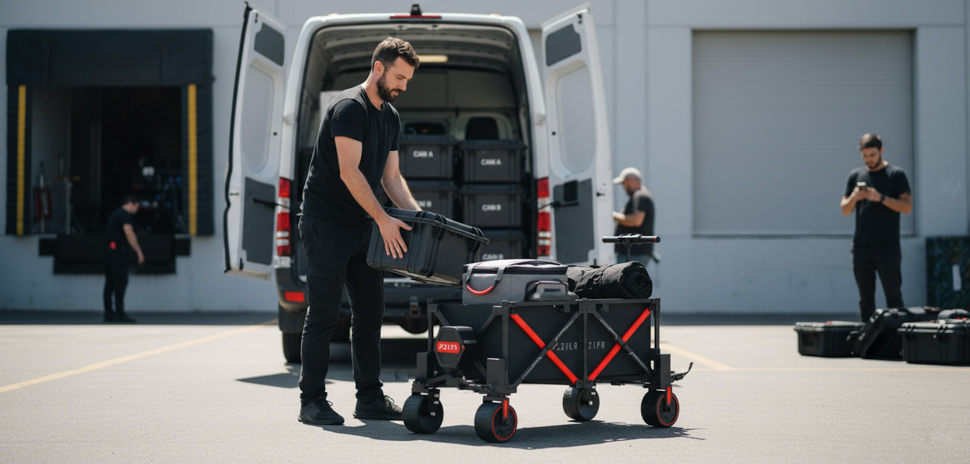 Ob vom Parkplatz zum Set, durch weitläufige Messehallen oder über Werksgelände – der Zipr verkürzt Wege, beschleunigt Abläufe und steigert die Arbeitssicherheit. Mit bis zu 350 kg Nutzlast, 183 Litern Volumen und einer Spitze bis 16 km/h (modellabhängig) ersetzt er Tragen und Ziehen durch effizientes, kontrolliertes Fahren.