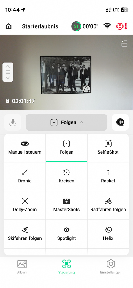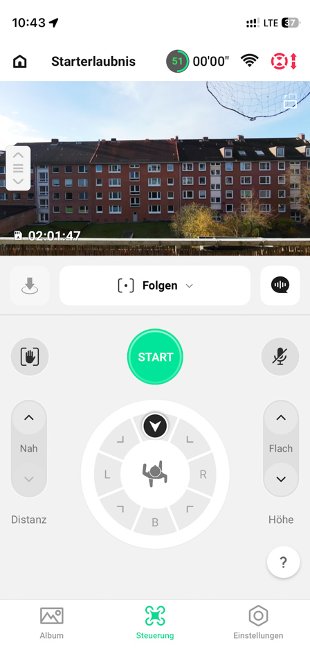 Neben einfachem Tracking (Follow Mode) gibt es hier noch Selfie, Dronie, Circle und Rocket. Betätigt man die Starttaste, startet die Drohne nach kurzem Countdown dann von der Hand. Per Handgesten kann man in dem jeweiligen Mode, falls möglich, z.B. die Flughöhe bestimmen. Das ist ziemlich praktisch und macht die Drohne zu einem autarken Gerät ohne Controller.