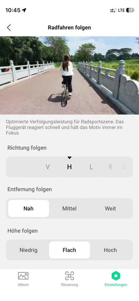 Durch die akzeptable Geschwindigkeit beim Tracking kann man also problemlos auf dem Rad, Skiern oder was auch immer fahren, während die Drohne noch hinterherkommt.