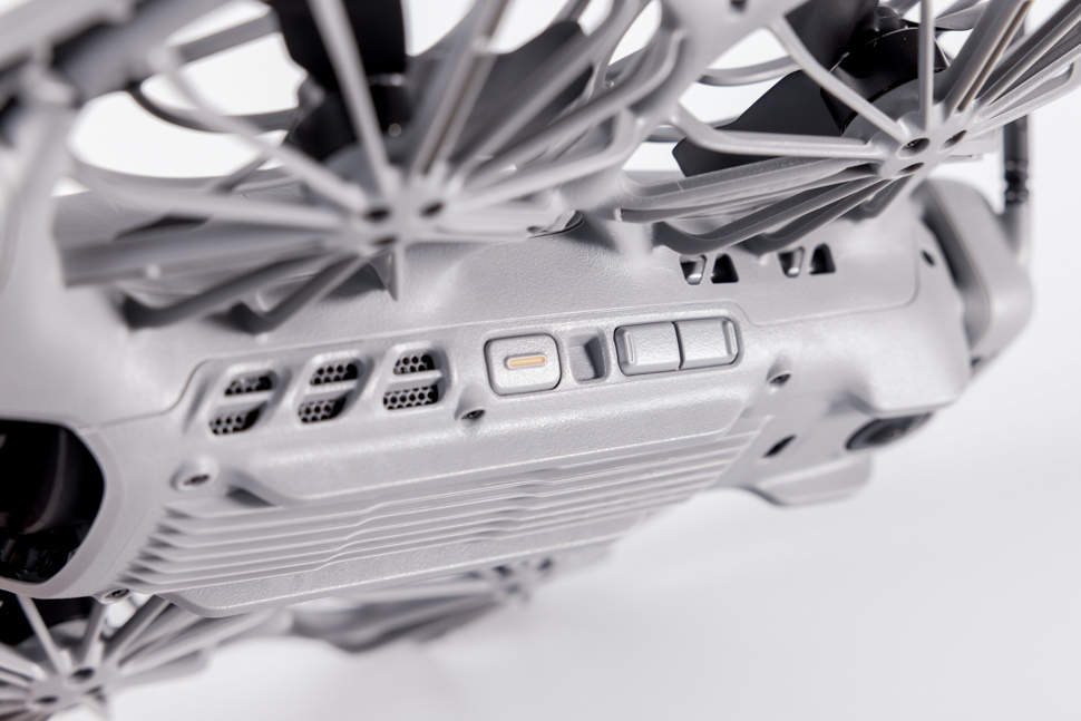 Auf der rechten Seite der Drohne befinden sich die Auswahltasten für die Modi sowie die Starttaste. Auf dem kleinen Bildschirm an der Vorderseite der Drohne wird dann angezeigt, welchen Modus man ausgewählt hat.