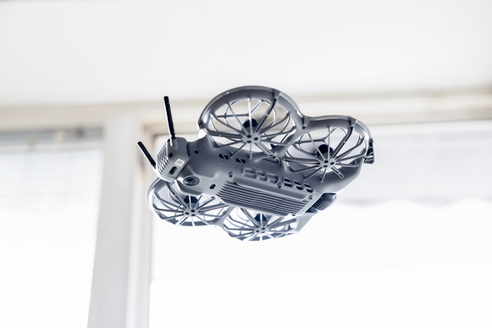 Auch im Innenraum haben die Sensoren ihre Vorteile. So könnte man theoretisch auch einige QuickShots indoor machen, weil sowohl Decke, Wände und sonstige Hindernisse erkannt werden. Aber selbst mit abgestellten Sensoren ist man in kleinen Räumen sehr sicher unterwegs, nicht zuletzt wegen der abgeschirmten Propeller.