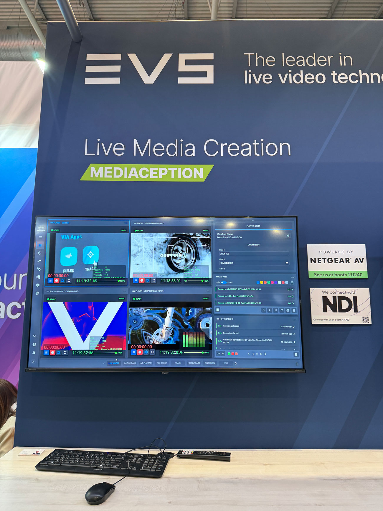 - Steuerungssysteme für verschiedene Gerätetypen zeigte EVS. Die Mediainfra-Lösungen bieten Funktionen für die Steuerung, Überwachung, Konvertierung und Echtzeitverarbeitung von SDI-, IP- und hybriden Broadcast-Infrastrukturen.