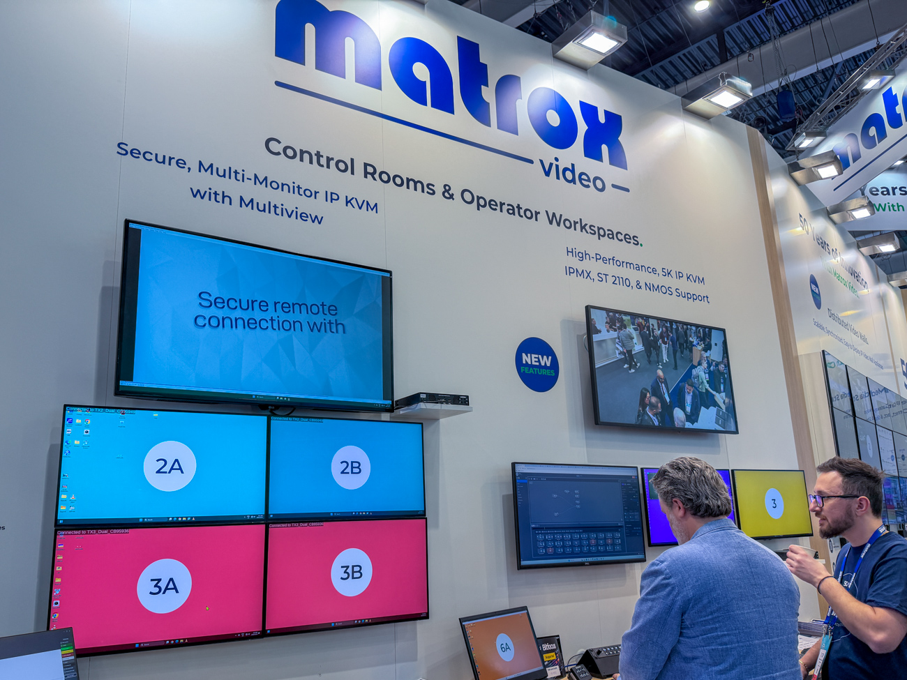 Offene Standards wie IPMX, ST 2110 und NDI bilden das Fundament der Matrox-Produktphilosophie (siehe Newsmeldung von der IBC). IPMX ist dabei fest in alle neuen Produkte integriert. Matrox betonte, dass die eigenen Lösungen nicht nur untereinander nahtlos zusammenarbeiten, sondern bewusst auch Drittherstellern offenstehen, um gemeinsam möglichst vollständige und interoperable Ökosysteme zu schaffen. Durchgängige IP-Workflows von der Quelle bis zum Bildschirm demonstrierten, wie flexible und zukunftssichere Installationen in Live-Umgebungen und Regieräumen realisiert werden können.