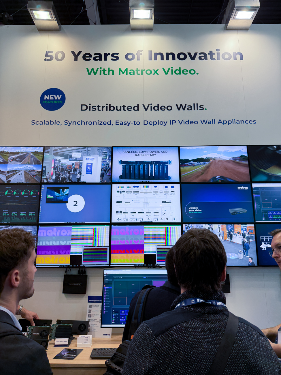Am Matrox Video-Stand stand das Thema AV over IP klar im Mittelpunkt. Das Unternehmen präsentierte sein breites Portfolio an IP-basierten Videolösungen: von Encodern, Decodern und Gateways über Maus-Controller bis hin zu IP-KVM-Lösungen. Herzstück einer Videowand-Demo war der Matrox Videowand-Controller, der die Leistungsfähigkeit der IP-basierten Infrastruktur in Aktion zeigte.