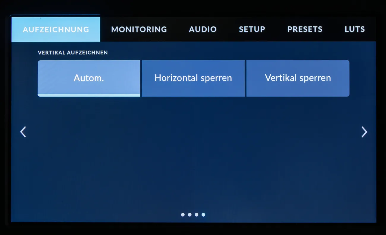 Die Einstellung für horizontale und vertikale Aufzeichnung die die Anzeigen drehen – das fehlte der Pyxis 6K noch.