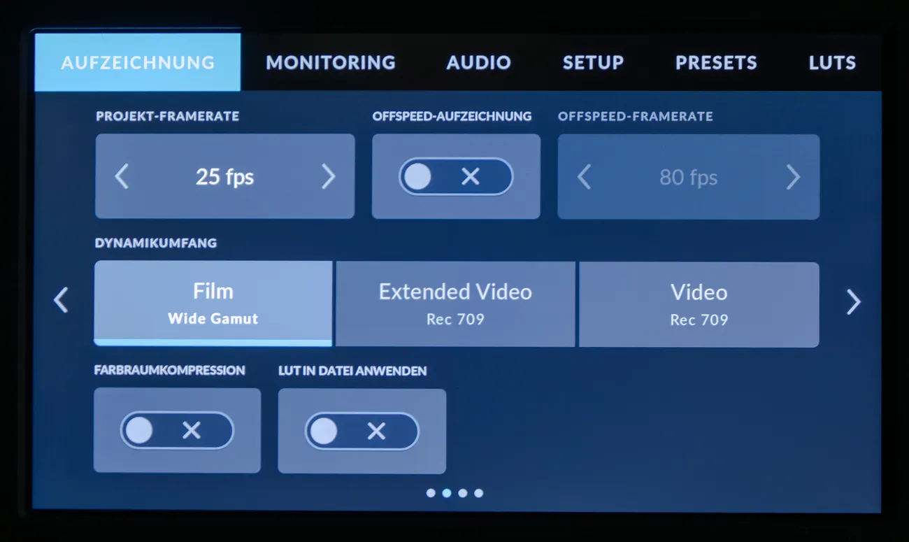Der Videomodus zeichnet in Rec.709 auf und limitiert den Kontrast des Bildes in den meisten Fällen so stark wie mit einer LUT, ohne dass sichtbar ist, wo noch Zeichnung vorhanden ist und wo nicht. Es gibt keine Möglichkeiten, die Bildschärfe in der Kamera einzustellen. Wie bei Raw üblich, wird dieser Prozess der Postproduktion überlassen. Die Pyxis 12K ist voll und ganz auf einen Raw-Workflow eingestellt, wo das finale Bild auch erst in der Postproduktion entsteht. Das gilt auch für Funktionen wie das Reduzieren von chromatischer Aberration oder Verzeichnungen. Alle diese Aufgaben fallen DaVinci Resolve zu.