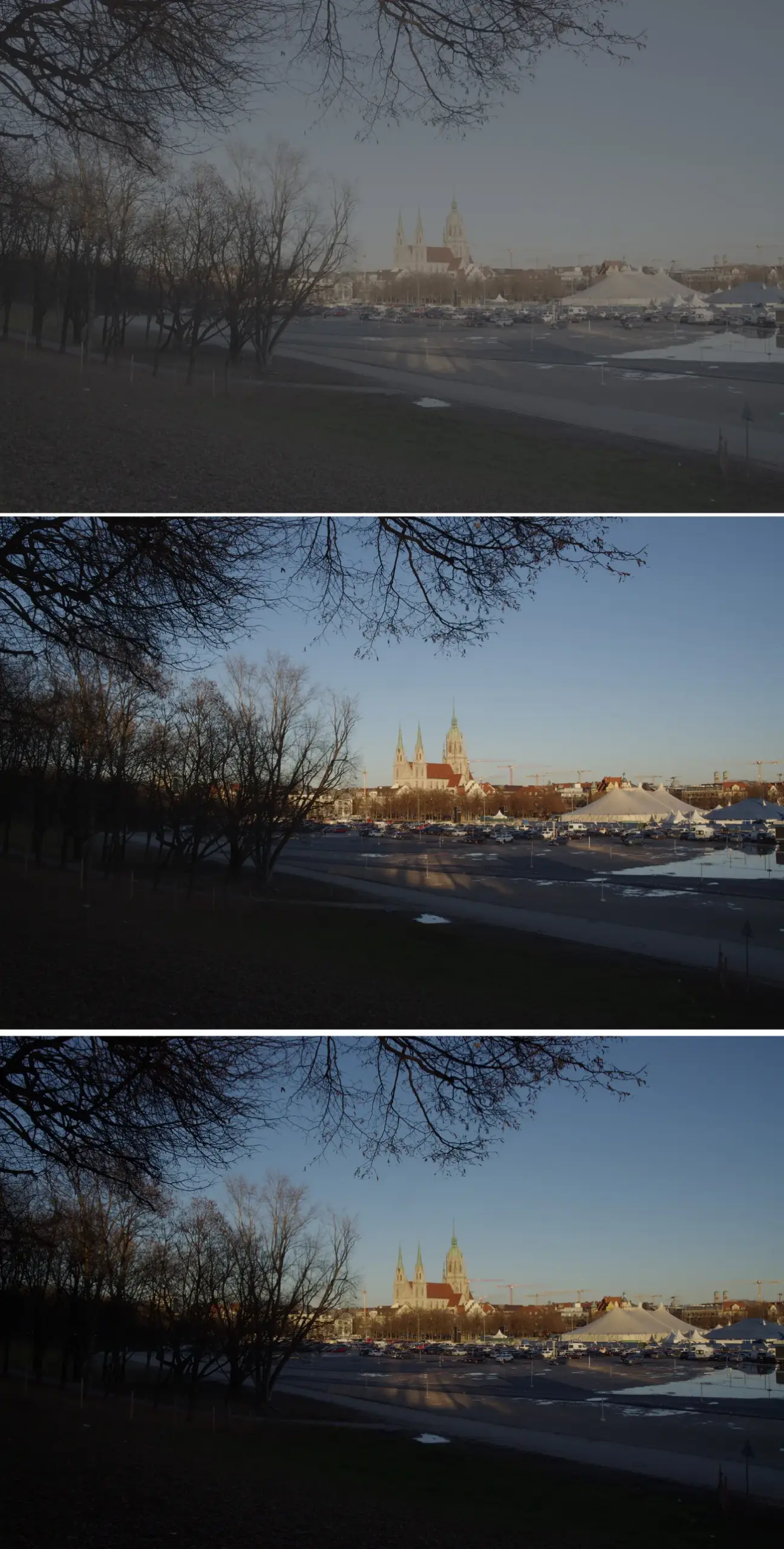 Eine Straßenszene muss schon sehr hell sein, dass sie ohne zusätzliches Licht verwendet werden kann. Hier zeigt sich allerdings auch der große Vorteil der Pyxis 12K: der gute Dynamikumfang und die Fähigkeit, mit Unterbelichtungen umzugehen. Selbst bei Außenaufnahmen mit Gegenlicht und sehr dunklem Vordergrund ist es mit einer Kurve einfach möglich, wieder ein gutes Bild herzustellen. So gut wie alle Tests habe ich im »Film«-Modus durchgeführt, so nennt BMD den Log-Modus. In der Praxis verwende ich bei BMD meist den »erweiterten Video«-Modus. Das erlaubt eine Beurteilung des Bildes auch ohne LUT, und diese Einstellung kann sowieso jederzeit in der Postproduktion umgestellt werden. Der »erweiterte Video-Modus« hat zwar nicht ganz den Kontrast des Film-Modus, aber einen realistischeren Bildeindruck und gesättigte Farben.
