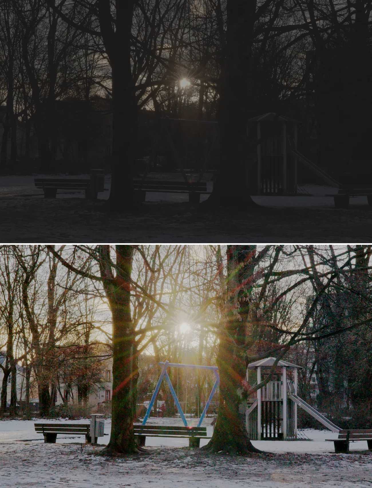 Selbst bei einer stark unterbelichteten Einstellung mit Gegenlicht (oben) lässt sich mit Curves schnell ein brauchbares Bild herstellen (unten).