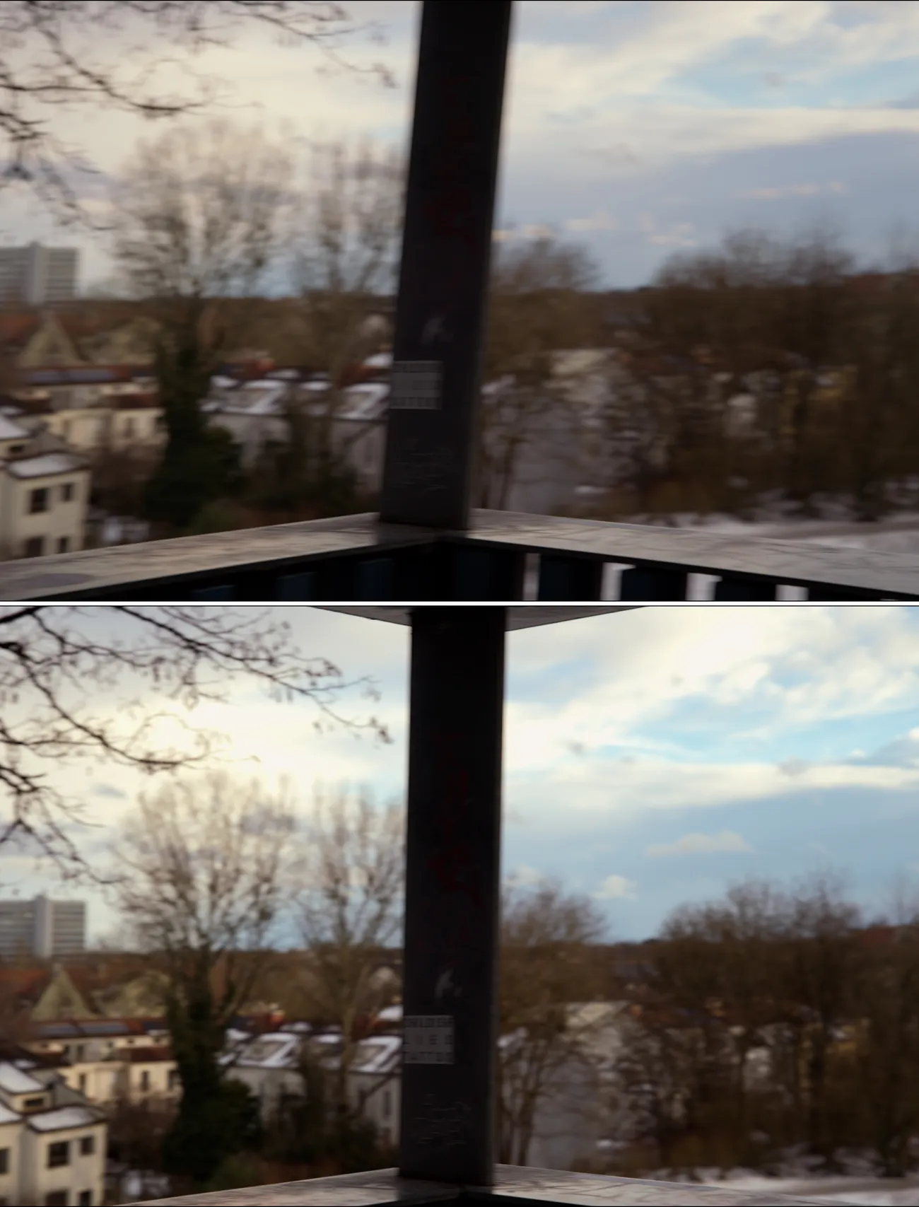 Kein wissenschaftlicher Test, aber der Rolling Shutter ist in 12K (oben) sichtbar stärker aufgeprägt als in 8K (unten).