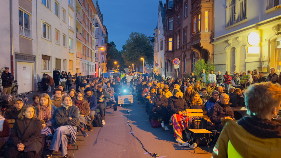 Viele Regisseur_innen präsentierten ihre Werke persönlich, außerdem gab es zahlreiche (Panel-)Diskussionen. In Wuppertal folgte auf »The Pickers«, einen Film über die Arbeitsbedingungen von Erntehelfer_innen in Europa, eine Diskussion mit Landwirt_innen. Über den Film »Wie schaffen wir die Agrarwende?« debattierte das Publikum an einem passenden Ort: in der vollbesetzten Packhalle eines Biolandhofs im nordrhein-westfälischen Eitorf. In Mainz wurde bei einem Open-Air-Event vor einer Szenekneipe der Film »Kein Land für Niemand« gezeigt, der Rettungseinsätze auf dem Mittelmeer sowie die Lebensbedingungen in Flüchtlingslagern an den europäischen Außengrenzen dokumentiert. Auf der Bühne sprachen Vertreter_innen des Mainzer Flüchtlingsrats RLP e.V., der Seebrücke Mainz, der Organisation »Seapunks« und des Vereins zur Unterstützung von Menschen in Abschiebehaft.