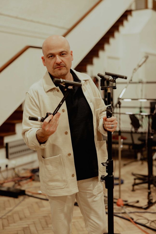 »Das Studio 2 ist ein derart ikonischer Raum, den man schon auf so vielen großartigen Aufnahmen gehört hat, dass man ihm gerecht werden möchte. Wir wollten einige ‚dunkle‘ Arrangements darin aufnehmen und auch den dortigen Hallraum integrieren. Schoeps stellt mehrere Mikrofone in immersiven Konfigurationen zusammen; wir nutzten ein ORTF-3D-ähnliches System mit acht Mikrofonen, um zu bekommen, wonach wir gesucht hatten.«