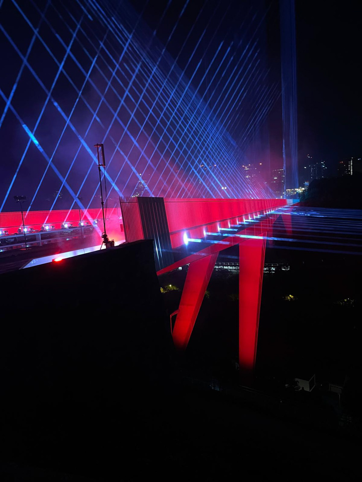 Auf einer großen Showbühne fanden Darbietungen statt, und zahlreiche Prominente säumten die Brücke und roten Teppich. »Dafür hatten wir noch einmal alles an Technik aufgefahren. Mit insgesamt 40 Kameras inszenierten wir diese große Show« erläutert Julian Reeh.