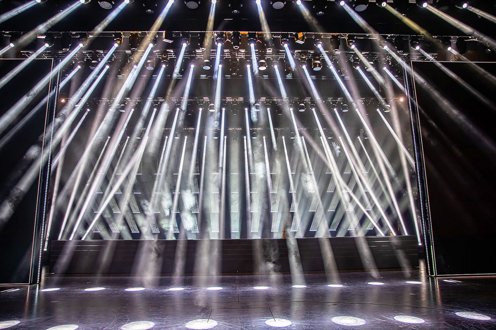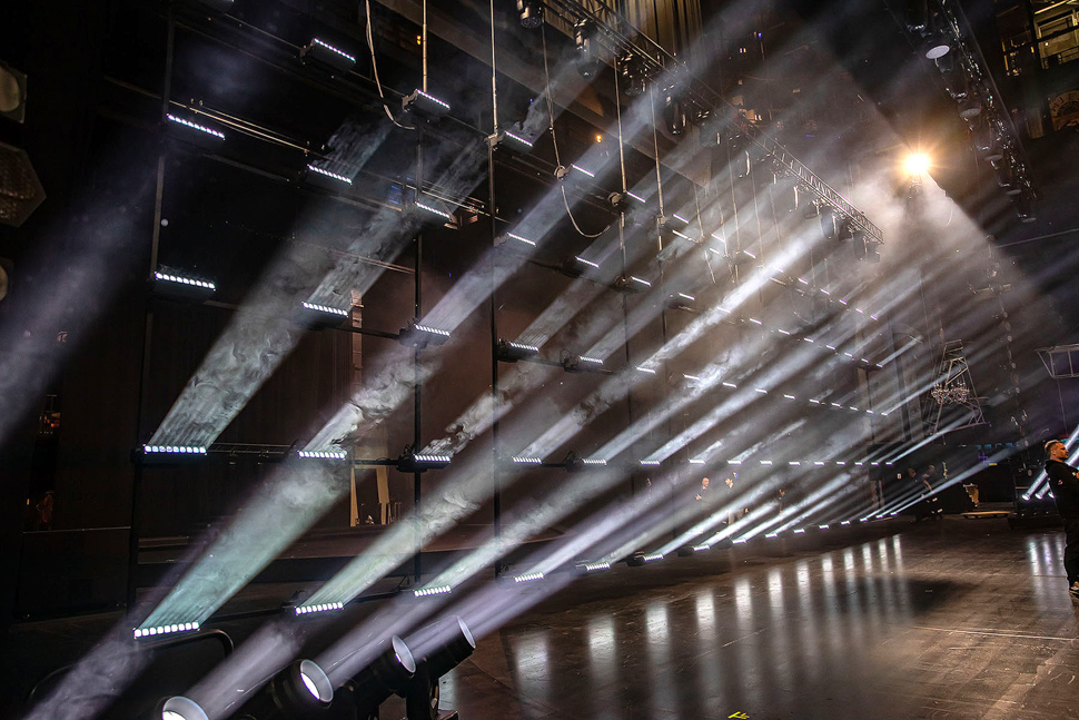 Der Friedrichstadt-Palast hat mit 2854 qm bespielbarer Gesamtfläche die größte Theaterbühne der Welt, bietet mit 24 Metern eines der breitesten Bühnenportale Europas und ist mit 1895 Sitzplätzen seit 1984 der größte Theaterbau in Berlin. Die enorme Bühnenfläche stellt eine der größten Herausforderungen für jede Produktion dar, da man diese mit Performern, Licht und LED-Flächen ausfüllen muss. »Unser Budget ist zwar solide, aber nicht unbegrenzt. Jede eingesetzte Leuchte muss daher einen maximalen Mehrwert für die Grand Show liefern«, so Herda.