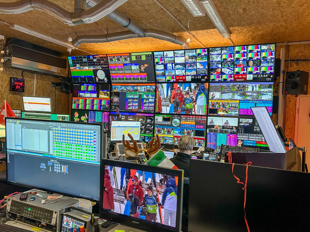 Die Produktion von Olympia wird dort in drei Regien abgewickelt: In der Hauptsenderegie (PCR) und zwei Sub-Regien, die jeweils die Schwerpunkte Biathlon und Skispringen/Ski Alpin/Rodeln sowie weitere Sportarten abwickeln.