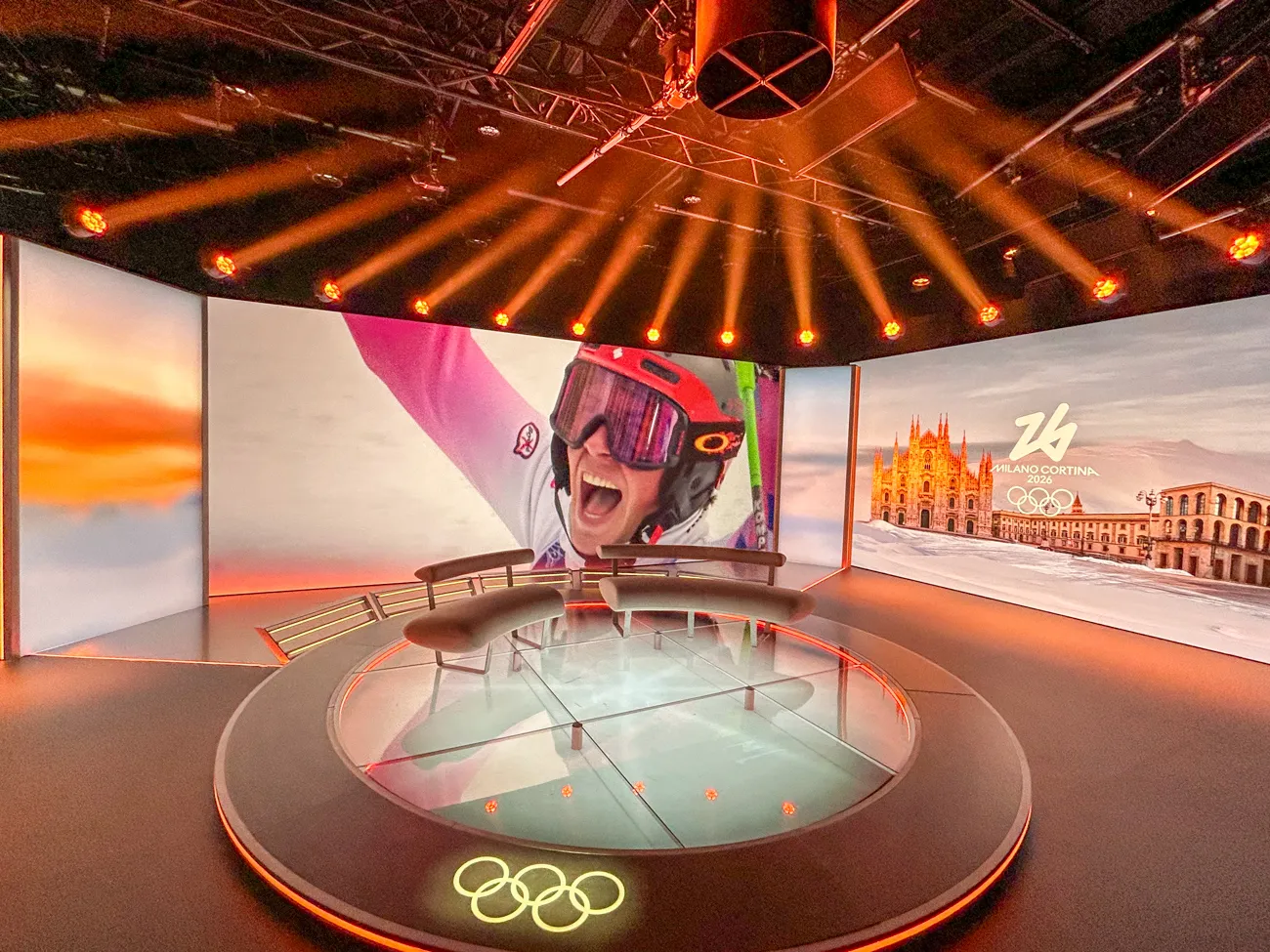 Das Olympia-Studio auf dem Lerchenberg ist mit fünf Kameras aus der Grass Valley LDX-Serie (LDX 135/150) ausgestattet. Große Jupiter LED-Wände mit einer Pixelpitch-Auflösung von 1,58 mm dienen als Hintergrund- und Informationsflächen. Die Mediensteuerung erfolgt über Watchout 7.
