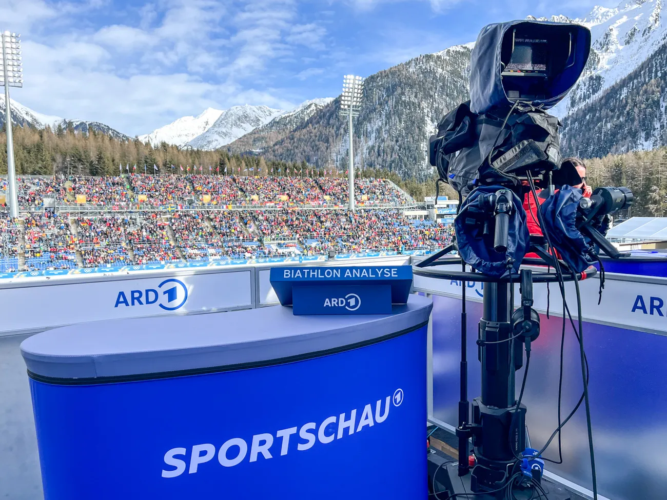 Die besonders beliebten Wintersportarten Biathlon und Skispringen produzieren ARD und ZDF mit etwas größerem Besteck.Biathlon in Antholz ist dabei das am umfangreichsten ausgestattete Venue. Es verfügt über eine dedizierte Glasfaseranbindung mit 2 Gbit/s und ist über Nimbra-Technik remote an das NBC angebunden.