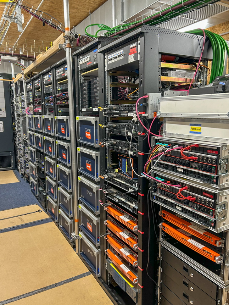 Vor Ort ist der BR Übertragungswagen FÜ 2 als Remote-Hub-Fahrzeug im Einsatz. »Es wird nicht als klassischer Ü-Wagen genutzt, sondern stellt Arbeitsplätze bereit – darunter auch Remote-Schnittmöglichkeiten und je einen Platz für ARD und ZDF zur Remote-Schnittbeobachtung via Microsoft Teams. Bewusst wurden keine zusätzlichen Container am Venue gebucht; alle Arbeitsplätze befinden sich im Fahrzeug«, erläutert Christoph Over.