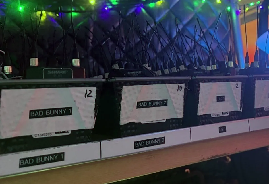 Besonders anspruchsvoll für die Techniker war der Auftritt von Bad Bunny in der Halbzeitshow. »Als ich erfahren habe, dass Bad Bunny bei der Halftime Show des Super Bowl LX ein Headset nutzen möchte, war ich erst skeptisch«, sagt Tom Holmes, Broadcast Audio Mixer für den Super Bowl LX. »Bei einer so großen Show in einem Stadion dieser Größe und mit buchstäblich tonnenweise Lautsprechern auf dem Spielfeld greife ich normalerweise lieber zu einem Handmikrofon.« Letztlich schaffte die Kombination eines Shure SM39 Headset-Mikrofons und eines Axient Digital ADX1 Taschensenders die von Bad Bunny gewünschte Bewegungsfreiheit.