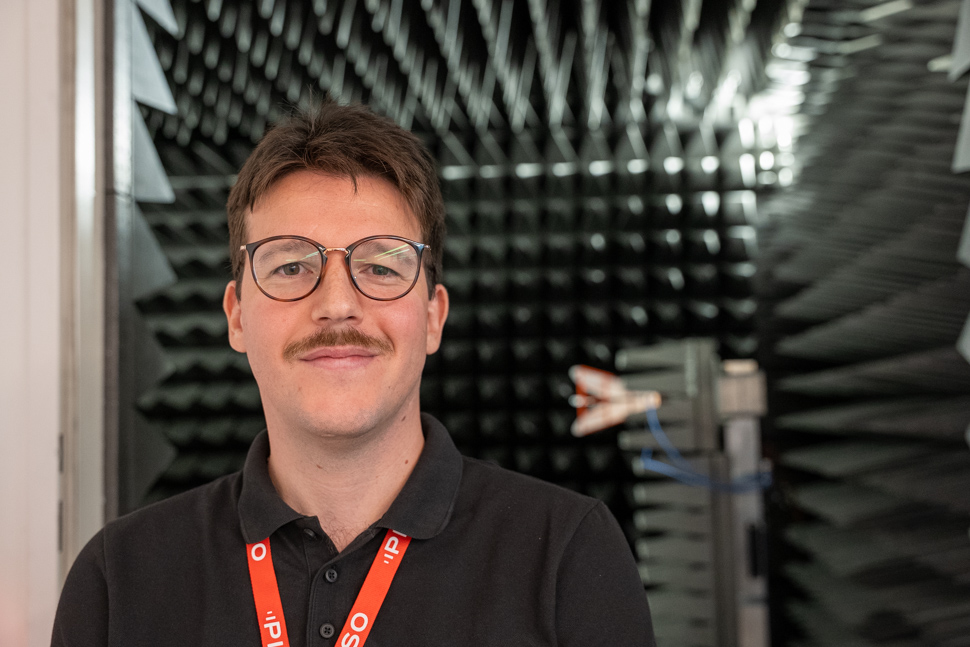 »In unserer Messkammer können wir unsere Entwicklungen detailliert und präzise messen. Es geht ja immer um die zentrale Anforderung, dass eine Antenne möglichst viel dem, was sie empfängt, auch abstrahlt und dass Geräte keine unerwünschten Frequenzen abstrahlen. Das erfordert viel Präzision in der Entwicklung, und genau dafür betreiben wir diese Messkammer.«